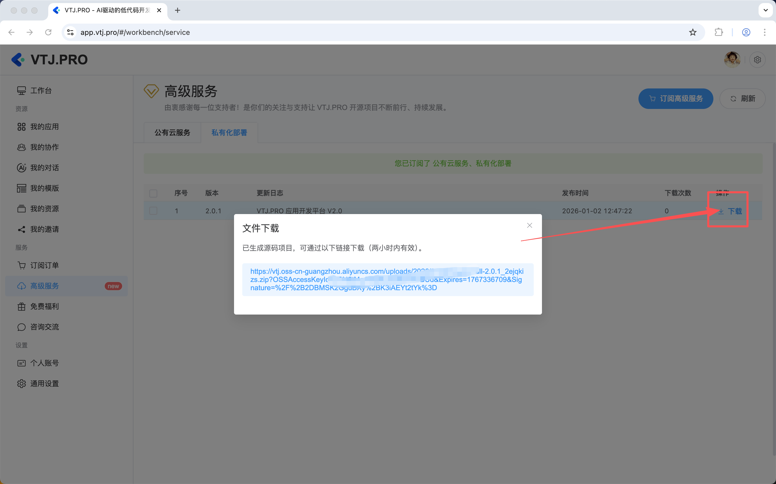 订阅高级服务,登录 https://app.vtj.pro/#/workbench/service 下载。