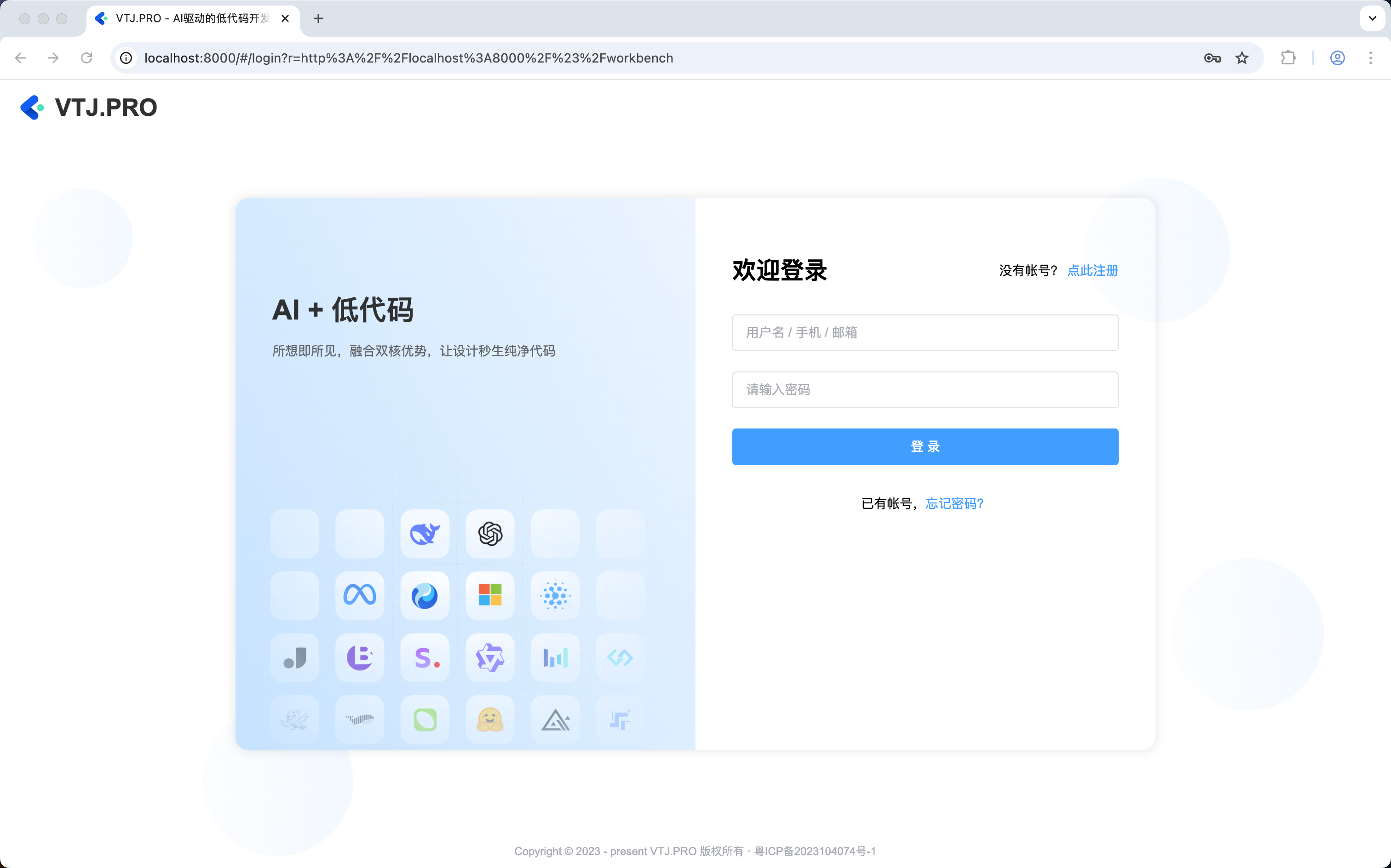 恭喜!您已成功完成 VTJ.PRO 应用开发平台的初始化工作。系统现已具备以下能力: