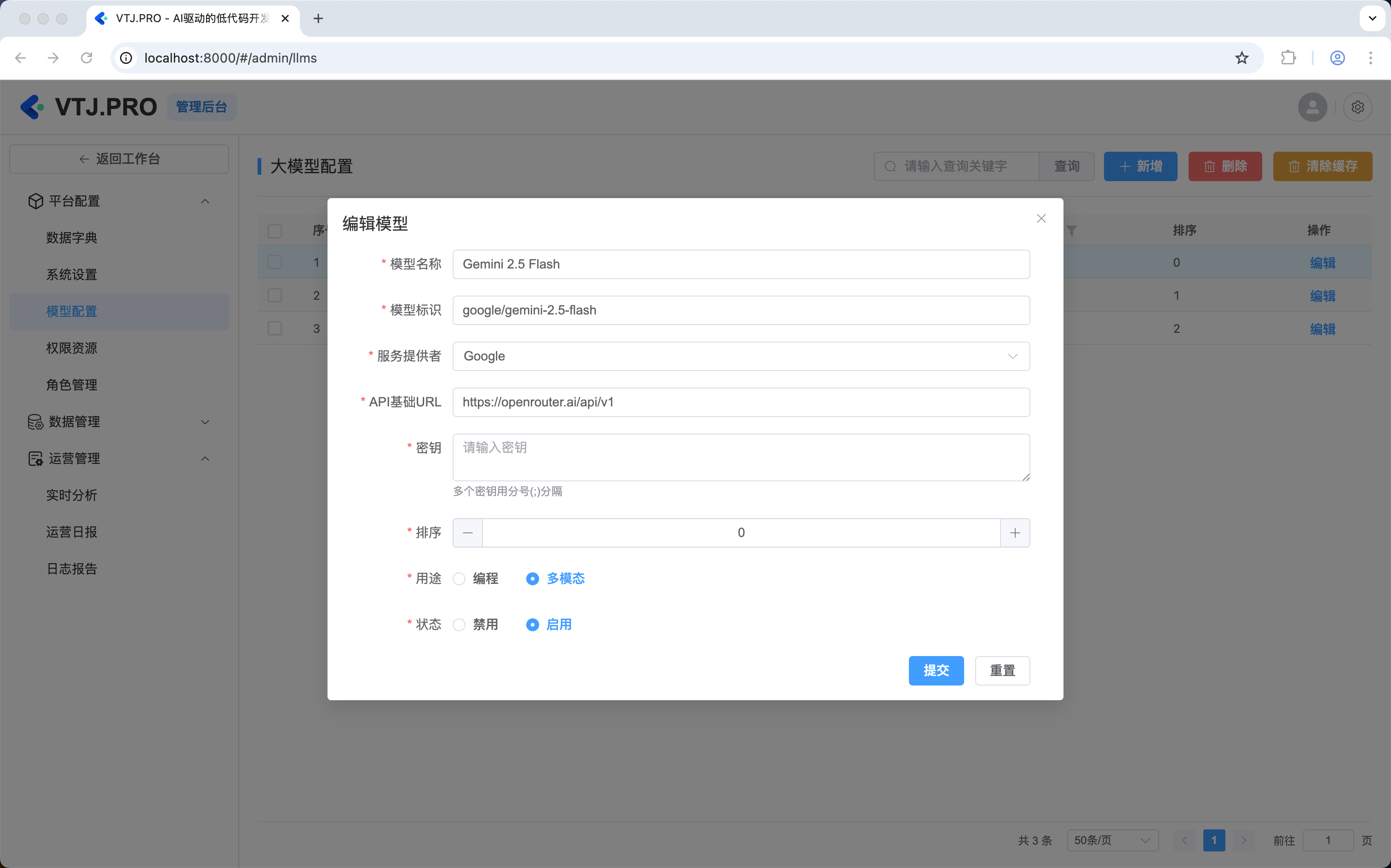 - 确认已配置至少一个多模态和一个编程模型