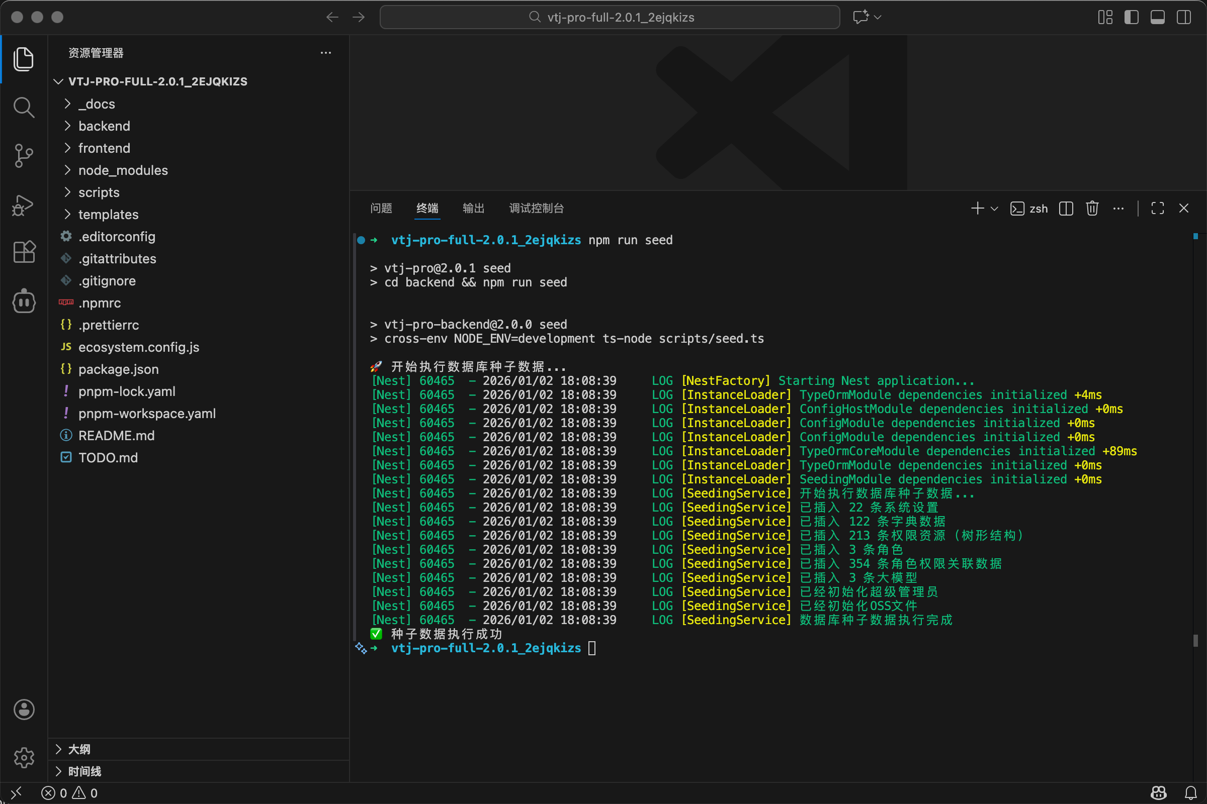 | 5 | 初始化种子数据 | 1-2分钟 | 基础数据(用户、角色、权限等) |
