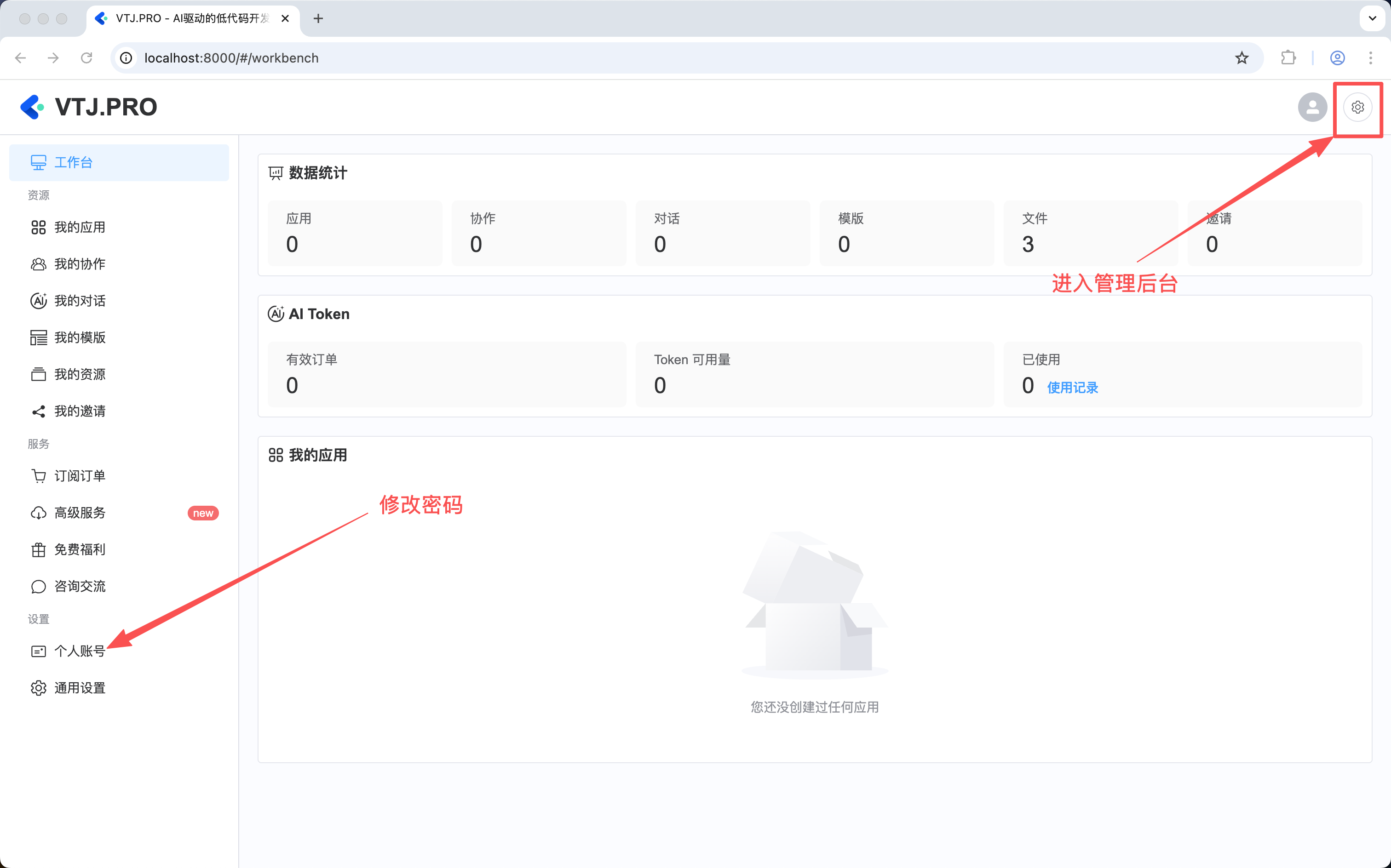 本文档将引导您完成 VTJ.PRO 应用开发平台的首次初始化流程。请按照以下步骤顺序操作,确保系统正确配置并正常运行。