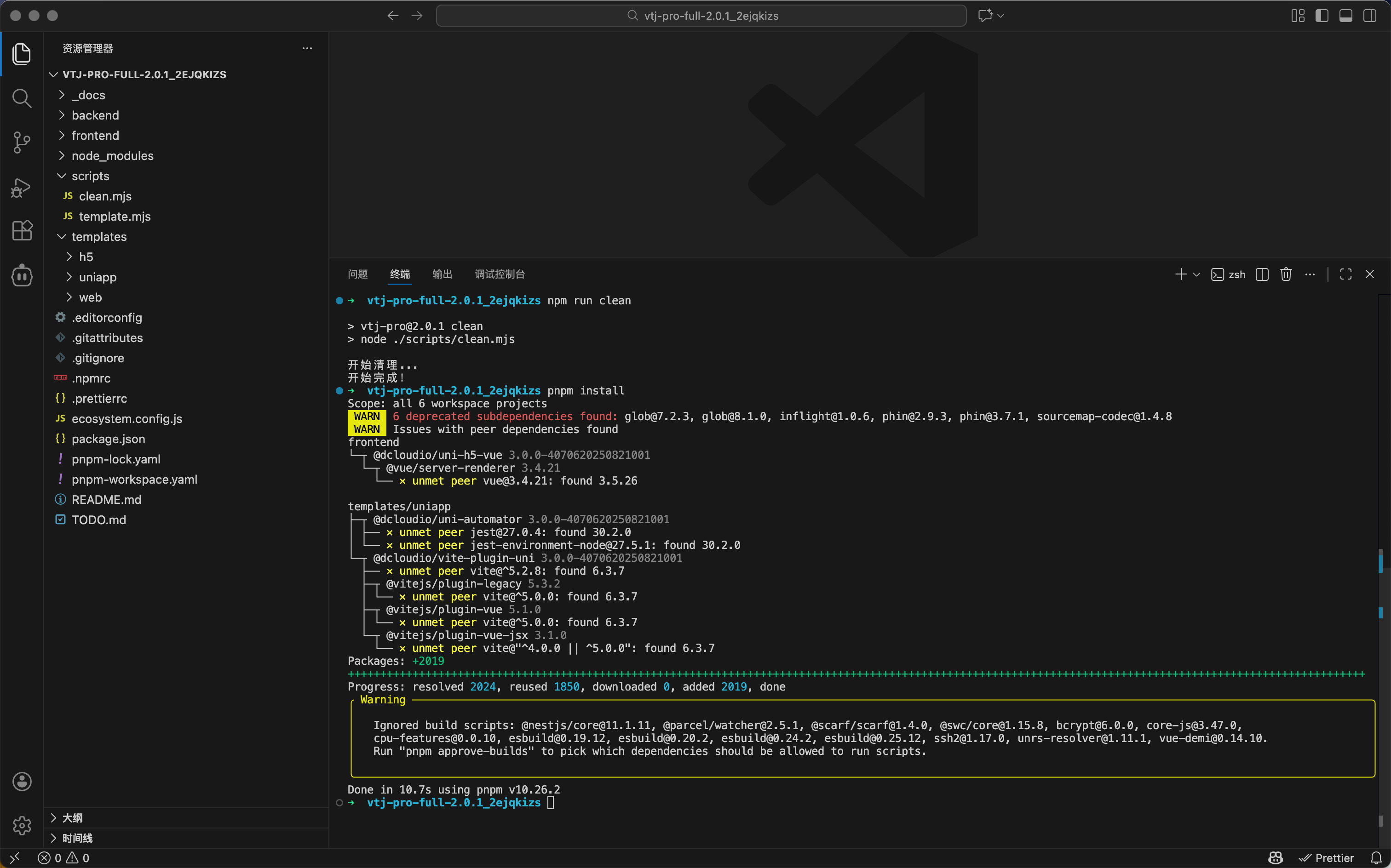 - 显示各工作区(frontend、backend)的安装进度
